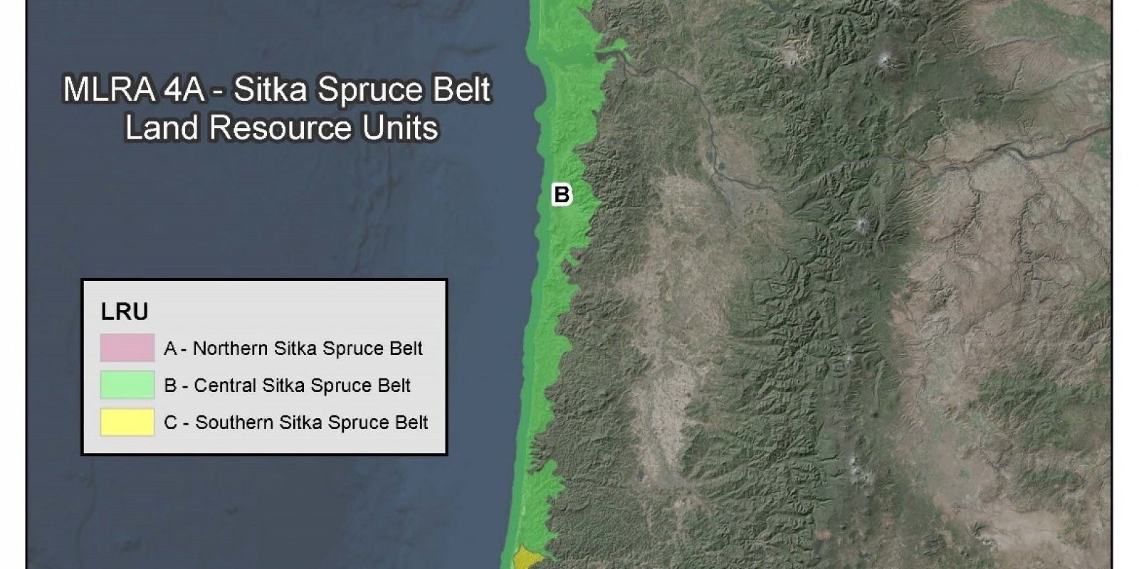- Site is located within the Central Sitka Spruce Belt Land Resource Unit B (LRU 4AB). This unit occurs along the west coast between the Chehalis River in Washington and South Slough in Oregon.