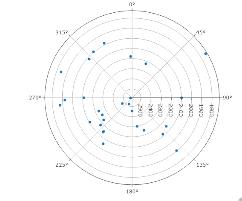 Figure 1. Plot showing aspect (degrees) and elevation (meters) of each Shallow to Loamy Calcareous range site surveyed in the Lost River Mountain LRU
