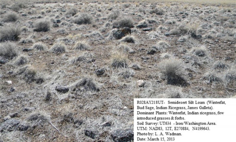 The Semidesert Silt Loam (Winterfat) site is typically located on alluvial flats or fans. The dominant plant community is winterfat (Krascheninnikovia lanata) and Indian ricegrass (Achnatherum hymenoides).
