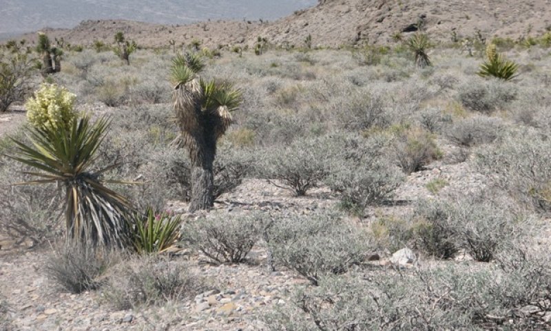 Reference Plant Community: Mojave Desert shrubs >> deep-rooted perennial forbs> deep-rooted, warm-season, bunchgrasses > deep-rooted, cool-season, bunchgrasses > annual forbs > shallow-rooted grasses.Sub-dominant: