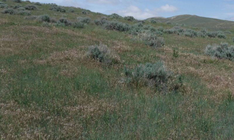 Minimal decadence can be observed and is typically associated with shrub component. It is common to find dead matter accumulated in bunchgrasses, but live plant matter quantity should exceed standing dead except for in times of severe drought. Sagebrush canopy will often have occasional dead branches, but it should not exceed 30% and shouldn’t be found on most plants. -