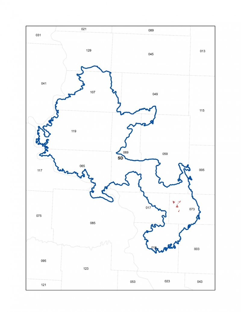 USFS Subregions: Northeastern Glaciated Plains Section (331E); Missouri Coteau Subsection (331Ea); Western Great Plains Section (331F); Missouri Breaks Subsection (331Fe); Western Glaciated Plains Section (332B); Southern Missouri Coteau Slope Subsection (332Bd, 332Be); North Central Great Plains Section (332D); Southern Missouri Coteau Slope Subsection (332Dd); Southern Missouri Coteau Subsection (332De) - (Cleland et al. 2007).