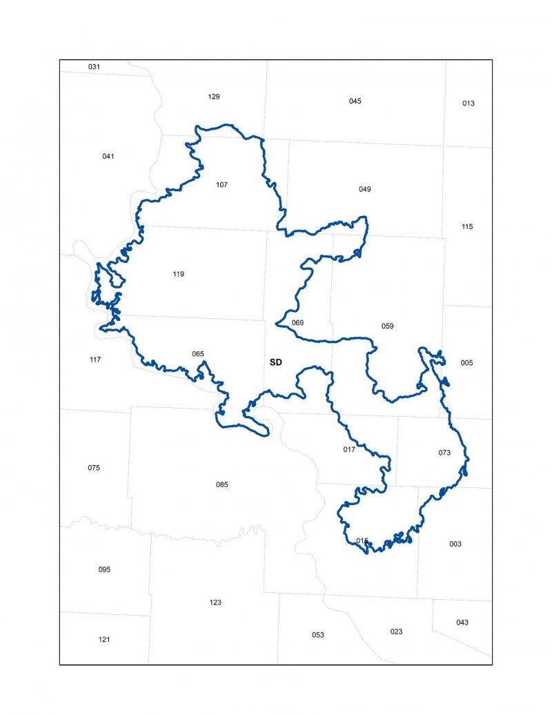 USFS Subregions: Northeastern Glaciated Plains Section (331E); Missouri Coteau Subsection (331Ea); Western Great Plains Section (331F); Missouri Breaks Subsection (331Fe); Western Glaciated Plains Section (332B); Southern Missouri Coteau Slope Subsection (332Bd, 332Be); North Central Great Plains Section (332D); Southern Missouri Coteau Slope Subsection (332Dd); Southern Missouri Coteau Subsection (332De) - (Cleland et al. 2007).