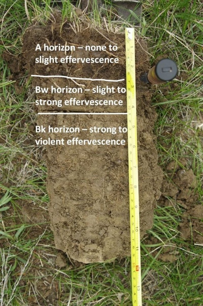 Figure 7. Limy Residual soils are typically calcareous throughout ranging from slight effervescence in the A horizon to violent effervescence in the Bk horizon. Soil development is evident by limited leaching of carbonates and moderate soil structure.