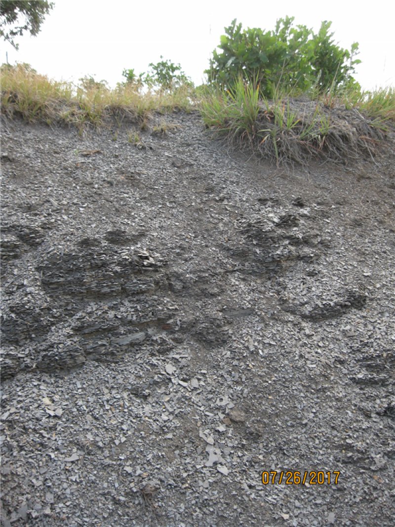 The soils of this site are shallow (less than 20 inches to bedrock), well drained, and are moderately permeable. The soils are formed from acid material weathered from shale and contain many small (up to 35 percent by volume) shale fragments. Soil texture is clay. This site should show slight to no evidence of rills except on steeper slopes. There may be some slight erosion due to wind, and some pedestalling of plants does occur. Water flow paths are broken, irregular in appearance, or discontinuous with numerous debris dams or vegetative barriers. Wind and water erosion is a hazard.