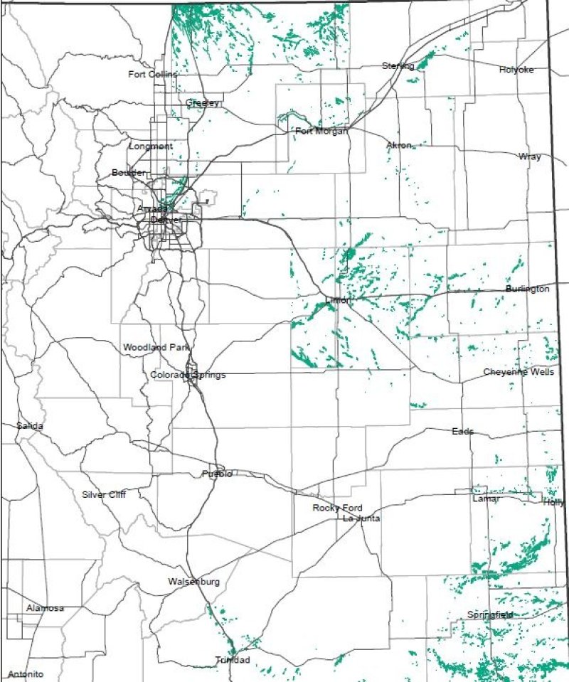 MLRA 67B occurs in eastern Colorado and consists of rolling plains and river valleys. Some canyonlands occur in the southeast portion. The major rivers are the South Platte and Arkansas which flow from the Rocky Mountains to Nebraska and Kansas. Other rivers in the MLRA include the Cache la Poudre and Republican and associated tributaries. This MLRA is traversed by Interstate 25, 70 and 76; and U.S. Highways 50 and 287. Major land uses include 54 percent rangeland, 35 percent cropland, and 2 percent pasture and hayland. Urban, developed open space, and miscellaneous land occupy approximately 9 percent. Major Cities in this area include Fort Collins, Greeley, Sterling, and Denver. Other cities include Limon, Cheyenne Wells, and Springfield. Land ownership is mostly private. Federal lands include Pawnee and Comanche National Grasslands (U.S. Forest Service), Sand Creek Massacre National Historic Site (National Park Service), and Rocky Mountain Arsenal National Wildlife Refuge (U.S. Fish & Wildlife Service). State Parks include Cherry Creek and Chatfield Reservoirs, and Barr and Jackson Lakes.