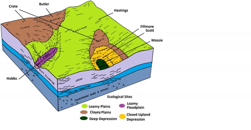 Under average climatic conditions, this community can be correlated to the Fillmore soil component of Closed Upland Depressions. The Fillmore soil is the major component of Fillmore map units and therefore this should be the dominant community of these delineations. It can be found as a minor inclusion in Scott map units and rarely in Massie map units.