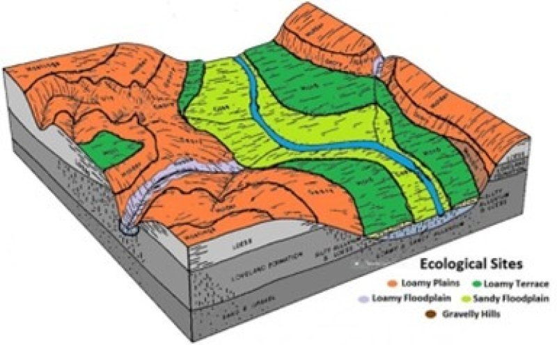Loamy Floodplain This site is often adjacent to but located lower on the landscape than the Loamy Terrace ecological site. |