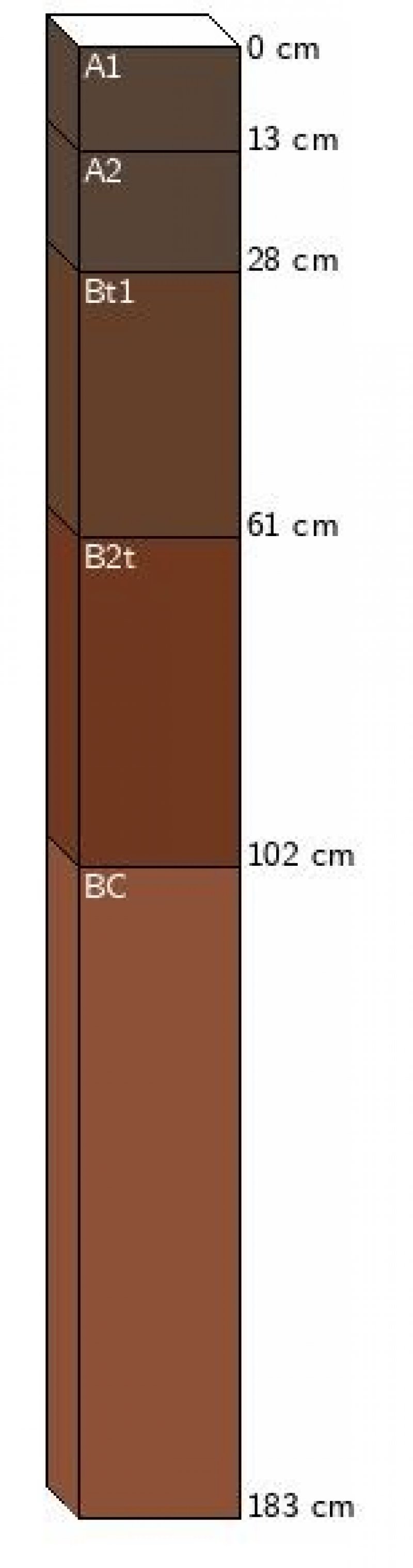 Soil surface intact A horizon: 0 to 11 inches, brown cobbly loam, fine granular structure B horizon: 11 to 40 inches, reddish brown very cobbly clay to red extremely cobbly clay loam. Soil structure is medium blocky to sub angular blocky. -