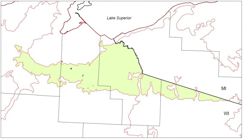 Small sections occur in the Gogebic-Penokee Iron Range (212Jb) subregion