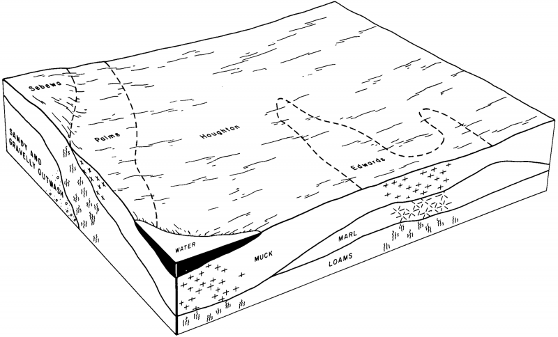 Physiography consists of sandy lake plains and dunes along the western side adjacent to Lake Michigan, and moderately sloping fine-loamy moraine from the Lake Michigan lobe of the Wisconsin Ice Sheet.