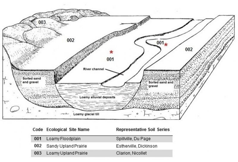 Loamy Upland Prairies The Loamy Upland Prairies ecological site is located on uplands throughout MLRA 103. Soils are somewhat poorly drained to well drained and are formed from fine loamy till and medium textured lacustrine materials. This site does not flood or pond. The historic vegetative community was fire dependent and included native warm season grassland, brush prairie, and open savanna. |