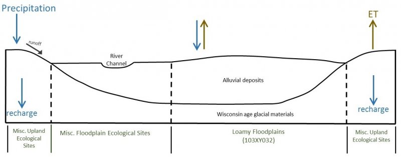 The Loamy Floodplains ecological site occurs in floodplains along rivers and drainageways throughout MLRA 103. This site is characterized by loamy-textured soils and a hydrologic interaction with the adjacent river or stream. Soils are somewhat poorly drained to moderately well drained. Flooding may be long-term in some areas. Anthropogenic influences such as ditching, draining, and land clearing have altered the historic flooding regime in most watershed. Many areas are now in agricultural production.