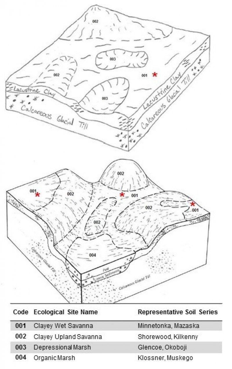 Loamy Wet Savannas The Loamy Wet Savannas ecological site is located on soils that are derived from fine loamy till. Soils are classified as poorly drained. This site occurs on morainal ridges or in slight concavities and linear segments with a slope of less than 2 percent. |