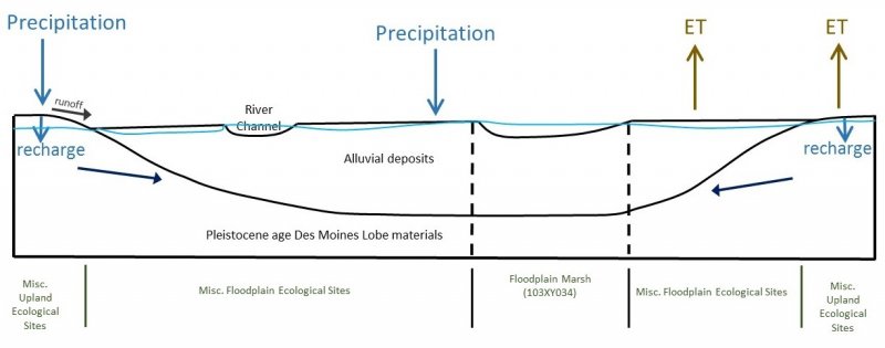 The Floodplain Marsh ecological site occurs on floodplains along rivers and drainageways. This site is influenced by hydrologic interactions with the adjacent river which influences the depth of soil saturation. Soils are very poorly drained. Flooding and ponding occurs frequently. The plant community is highly variable depending on hydrology but consists of native wet grasses and scattered hardwoods.