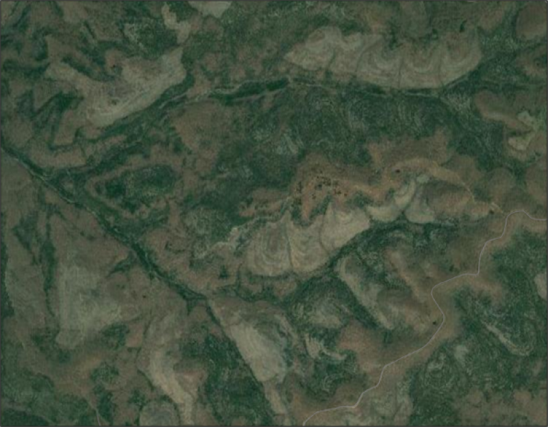 Figure 1. Aerial view of a representative bald knob landscape (Google Maps, accessed April2021) in Hercules Glades Wilderness Area, Mark Twain National Forest, Taney County, MO.
