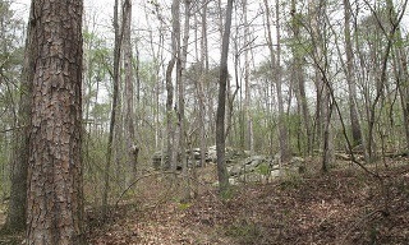The terrain is gently sloping tablelands of level-bedded sanstone formations and hilly to mountainous terrain consisting of shale and sandstone slopes forming deep canyons with steep connecting escarpment. Forests are largely oak-pine, loblolly-shortleaf pine, or oak-hickory cover types (McNab et al. 2005).