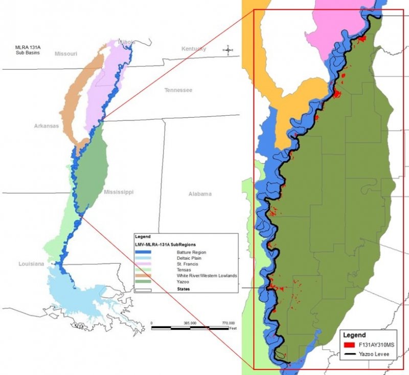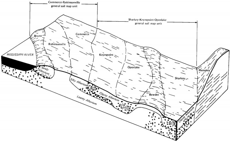 This site was primarily created by recent deposits of loamy material on levee and meander scroll ridges of the Mississippi River and its tributaries. These younger deposits are distinguished from their much older counterparts of long abandoned meander belts (see site ID: F131AY306MS) in having little evidence of pedogenic horizon development and by having nonacid reactions. This soil-site environment has few limitations and is quite productive.