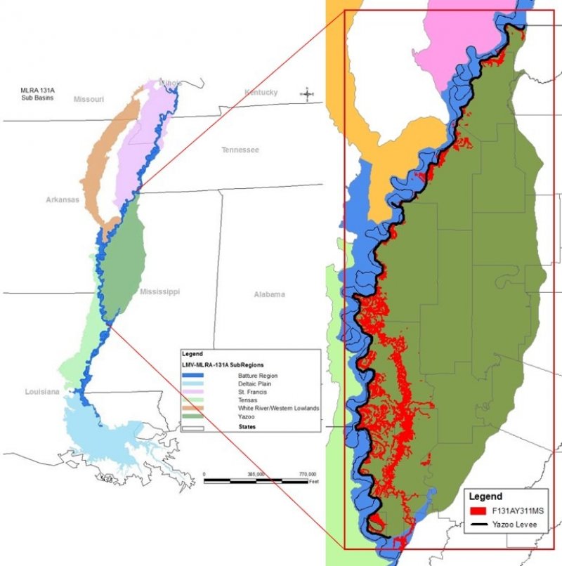 This site was primarily created by recent alluvial deposits on levee and meander scroll ridges of the Mississippi River and its tributaries. These younger deposits are distinguished from their much older counterparts of long abandoned meander belts (see site ID: F131AY307MS) in having weak pedogenic horizon development and nonacid reactions. This soil-site environment has few limitations and is quite productive.
