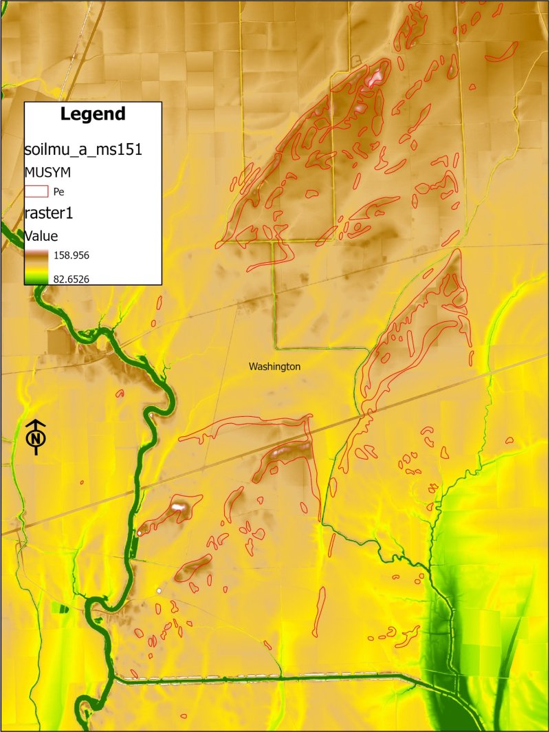 This ecological site has a narrow distribution in the Yazoo Basin where it is restricted to the higher elevations or positions on valley train geomorphic features. The characteristic landform of this site consists of remnant depositional ridges and braid bars that were created during catastrophic flood releases (or pulses) of glacial outwash during the Late Pleistocene epoch. Today, these depositional features consist of a series of disjunct mounds and low, elongated ridges that are positioned beside and within the highly braided and dendritic network of remnant, glacial outwash channels. The soils of this site are described as deep, well drained to moderately well drained that formed in silty alluvium – stream and river sediments that veneered the underlying coarse outwash materials. Recent observations and a revisit of these soils strongly suggest that drainage and permeability can be more rapid than initially described. Evidence for this is expressed by plant stress and possibly poorer crop yields in some locations. The historic plant community of this site is unknown. These soils occur as small isolates within a much larger mosaic of productive soils. Hence, most occurrences of this site have been converted to agriculture production or was once under other forms of intensive land use such as grazing and human habitation. Archaeological discoveries over the past century have revealed human occupation or presence on this site for millennia. Depending on the presence and intensity of human activities, several conditions and habitat types likely existed, including local cultural and habitation sites, herbaceous openings, savannas, open woodlands, and forests. Fire was likely a historic management tool on this site. Based on forest surveys and research, the cover type most characteristic of this site may have been a diverse mixture of oaks and other bottomland hardwoods.