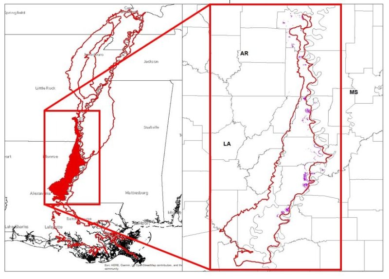 EPA Level IV Ecoregion (portions of 73a - Northern Holocene Meander Belts, 73d - Northern Backswamps, 73i - Arkansas/Ouachita River Backswamps, 73m - Southern Backswamps and 73K - Southern Holocene Meander Belts, of the Southern Mississippi River Alluvium Major Land Resource Area.)