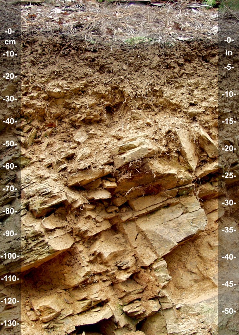 Soils on this ecological site are typically shallow to moderately deep, well drained to somewhat excessively drained Inceptisols, although shallow Ultisols are included in the range of variability. At the surface and throughout, these soils typically have an abundance of rock fragments. Parent materials are residuum derived from acidic, weathering-resistant igneous or metamorphic rocks.