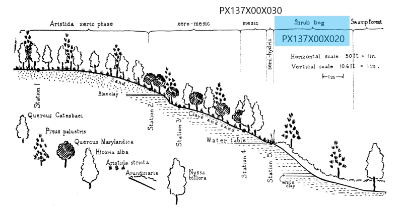 The reference state can transition to the pond pine seepage woodland with ongoing exclusion of fire or reduced fire frequency (~10 to 20-year return interval). Under these conditions, cover from tree species begins to increase.
