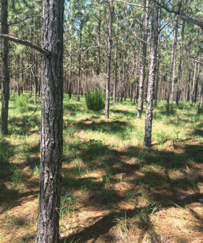 Phase 4.2 describes commercial pine plantations. Tree species grown for commodity production on this Site include sand, longleaf and slash pines. Pine plantations are usually very densely planted and even aged stands. Ground cover and midstory vegetation of pine plantations is usually sparse or absent, depending largely on the age of the plantation. The ground is typically covered with needle fall following canopy closure.