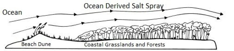 Figure 1. R155XY170FL is dependent on the formation and protection of coastal dunes(R155XY220FL), and will often boarder intertidal marshes and swamps (R155XY020FL) along protected shorelines from high energy action