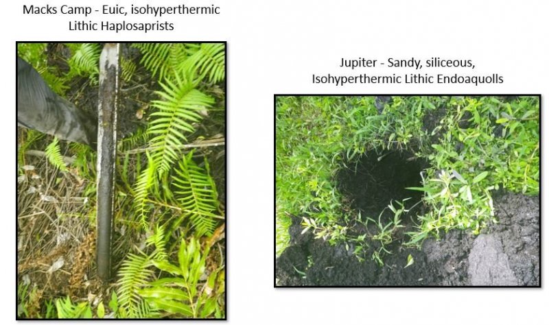 The species composition is mainly influenced by flooding patterns. In saturated and frequently flooded environments, more hydrophytic trees become more abundant. Frequency and depth of inundation have a pronounced effect on oak canopy composition as well, with saturated soils supporting more swamp laurel oak, and areas of infrequent flooding supporting more live oak. Flooding conditions contribute to hydric conditions and sapric organic material retention. Soils are variable, usually somewhat acidic to slightly alkaline with sapric organic matter, and mineral soils materials overlie a layer of Oligocene limestone near the surface and in some case deeper than 204 cm.