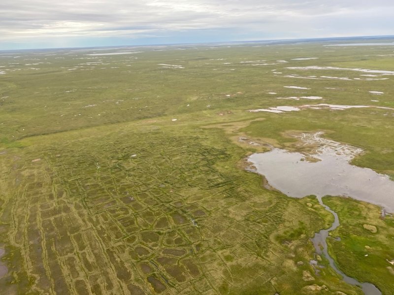 Arctic High-Center Polygon Complex Occurs on plains with tussock tundra and high-center polygons. |