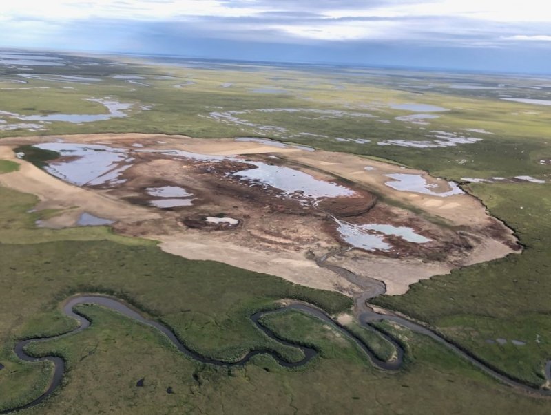 This MLRA is in the zone of continuous permafrost. Areas without permafrost in the soil profile are limited to tidal flats, large sand dunes, and soils directly adjacent to large rivers. Thick layers of permafrost occur in both fine textured and coarse textured deposits across the area. Depth to the base of the permafrost layer ranges between 500 and 2000 feet. Periglacial features, such as beaded drainages, patterned ground (ice-wedge polygons, thaw gullies, pingos, and frost boils) occur throughout the MLRA.