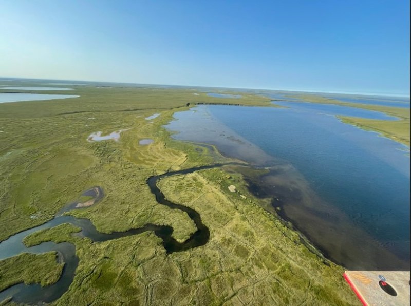 The Arctic Coastal Plain MLRA (MLRA 246X) consists of level to gently rolling plains along the coast of the Arctic Ocean. This area makes up 22,235 square miles. It is mostly remote, sparsely populated wildland. Numerous rivers, mostly originating in the Brooks Range, drain to the Arctic Ocean. The largest being the Canning, Colville, Jago, Kongakut, Kuk, Utukok, and Sagavanirktok Rivers. Narrow, nearly level flood plains and stream terraces parallel the many rivers. The area is dotted by thousands of small and medium-size lakes and interconnecting wetlands. Many of the lakes are elongated thaw lakes, which are consistently oriented from north to northwest. Small sand dunes occur along the coastline, rivers, and plains. Elevation ranges from sea level to about 655 feet.