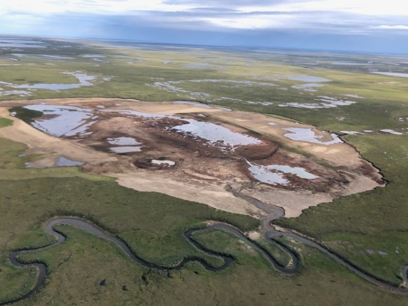 This MLRA is in the zone of continuous permafrost. Areas without permafrost in the soil profile are limited to tidal flats, large sand dunes, and soils directly adjacent to large rivers. Thick layers of permafrost occur in both fine textured and coarse textured deposits across the area. Depth to the base of the permafrost layer ranges between 500 and 2000 feet. Periglacial features, such as beaded drainages, patterned ground (ice-wedge polygons, thaw gullies, pingos, and frost boils) occur throughout the MLRA.